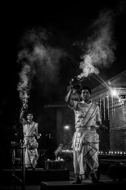 As detailed in many Shiv Aarti PDF resources, preparing for the ritual requires specific items. A diya (oil lamp) is fundamental, symbolizing the dispelling of darkness. Incense sticks create a fragrant, spiritual atmosphere. Fresh flowers, particularly bel (bilva) leaves, are highly auspicious for Lord Shiva.